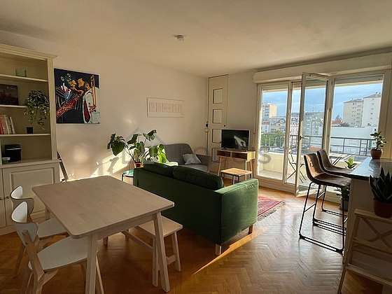 Cet appartement est composé d'un séduisant salon avec du parquet au sol et des fenêtres double vitrage avec balcon et vue sur rue. Ce salon très calme est meublé et équipé pour rendre votre séjour agréable : canapé, table à manger, 6 chaise(s).