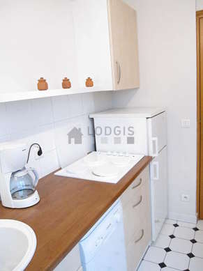 Cet appartement dispose d'une belle cuisine avec du carrelage au sol et tout l'équipement essentiel pour votre quotidien : plaques de cuisson, réfrigerateur, congélateur, micro onde combiné, bouilloire électrique, cafetière, vaisselle.