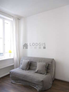 Cet appartement est composé d'un séduisant salon avec du parquet au sol et des fenêtres double vitrage et vue sur rue. Ce salon est meublé et équipé pour rendre votre séjour agréable : télé, draps, couettes, penderie, etagère, placard1 canapé(s) lit(s) de 140cm.
