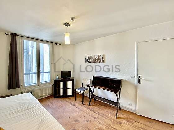 Cet appartement est composé d'un charmant salon avec du parquet au sol et des fenêtres double vitrage et vue sur cour. Ce salon calme est meublé et équipé pour rendre votre séjour agréable : télé, draps, couettes, bureau, penderie, etagère, commode, placard, 1 chaise(s), table de chevet1 canapé(s) lit(s) de 140cm.