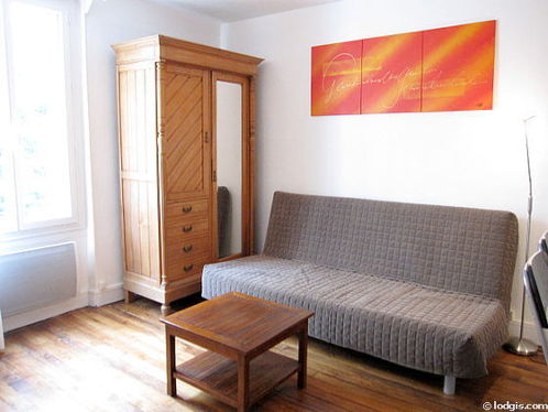 Cet appartement est composé d'un salon avec du parquet au sol et des fenêtres double vitrage et vue sur rue. Ce salon est meublé et équipé pour rendre votre séjour agréable : télé, draps, couettes, table basse, etagère, armoire1 canapé(s) lit(s) de 140cm.
