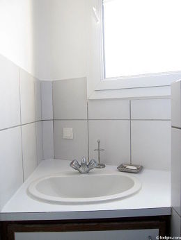Cet appartement est équipé d'une salle de bain claire. Cette salle d'eau bénéficie du nécessaire pour votre bien-être au quotidien : serviettes de bain, placard, douche séparée. Les toilettes sont séparées de la salle de bain et situées dans une pièce indépendante.