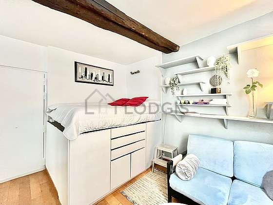 Cet appartement est composé d'un salon avec du parquet au sol et des fenêtres double vitrage et vue sur cour. Ce salon est meublé et équipé pour rendre votre séjour agréable : télé, canapé, armoire, placard, 2 chaise(s), tabouret1 lit(s) de 140cm.