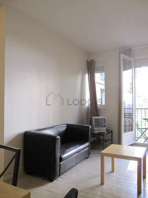 Cet appartement est composé d'un salon avec du carrelage au sol et des fenêtres avec balcon et vue sur jardin. Ce salon calme est meublé et équipé pour rendre votre séjour agréable : télé, canapé, table à manger, table basse, penderie, etagère, placard, 4 chaise(s).