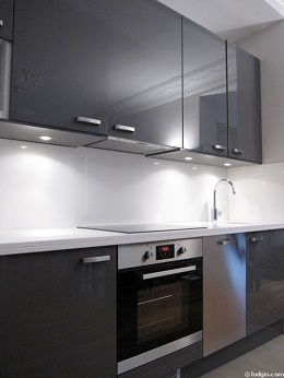 Cet appartement dispose d'une magnifique cuisine avec du carrelage au sol et tout l'équipement indispensable pour votre quotidien : plaques de cuisson, réfrigerateur, congélateur, four, micro ondes, hotte, grille pain, bouilloire électrique, cafetière, placard, vaisselle.