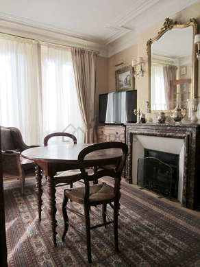 Afin de partager vos repas en toute convivialité pendant votre séjour parisien, cet appartement dispose d'une agréable salle à manger qui peut accueillir jusqu'à 4 convives grâce à télé, 1 fauteuil(s), table à manger, buffet, placard, 4 chaise(s).