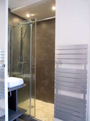 Cet appartement est équipé d'une salle de bain agréable. Cette salle d'eau bénéficie du nécessaire pour votre bien-être au quotidien : serviettes de bain, douche séparée, sèche cheveux, radiateur sèche-serviettes. Les toilettes sont intégrées dans la salle de bain.