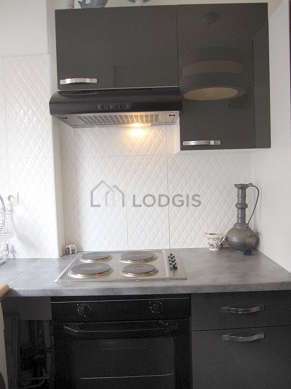 Cet appartement dispose d'une belle cuisine avec du carrelage au sol et tout l'équipement indispensable pour votre quotidien : plaques de cuisson, réfrigerateur, congélateur, four, bouilloire électrique, cafetière, table à manger, placard, vaisselle, 1 chaise(s), bar.