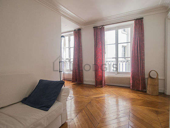 Cet appartement est composé d'un salon avec du parquet au sol et des fenêtres et vue sur rue. Ce salon calme est meublé et équipé pour rendre votre séjour agréable : canapé, 3 fauteuil(s), table basse, etagère, cheminée.