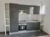 Cet appartement dispose d'une cuisine avec du parquet au sol et tout l'équipement indispensable pour votre quotidien : plaques de cuisson, réfrigerateur, micro onde combiné, freezer, hotte, grille pain, bouilloire électrique, cafetière, placard, vaisselle.