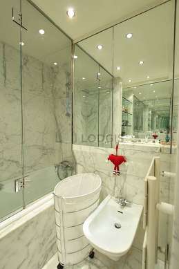 Ce duplex est équipé d'une salle de bain magnifique. Cette salle d'eau bénéficie du nécessaire pour votre bien-être au quotidien : serviettes de bain, etagère, placard, baignoire, radiateur sèche-serviettes. Les toilettes sont séparées de la salle de bain et situées dans une pièce indépendante.