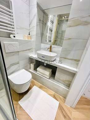 Cet appartement dispose d'une cuisine avec du carrelage au sol et tout l'équipement indispensable pour votre quotidien : plaques de cuisson, réfrigerateur, micro ondes, freezer, hotte, grille pain, bouilloire électrique, cafetière, placard, vaisselle.