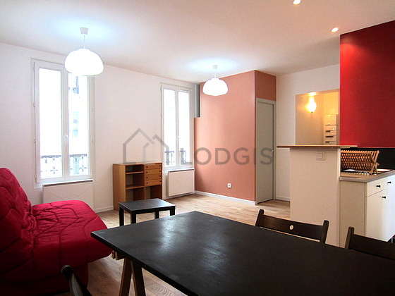 Cet appartement est composé d'un séduisant salon avec du parquet au sol et des fenêtres double vitrage et vue sur rue. Ce salon calme est meublé et équipé pour rendre votre séjour agréable : table à manger, table basse, penderie, etagère, placard, 4 chaise(s)1 canapé(s) lit(s) de 140cm.