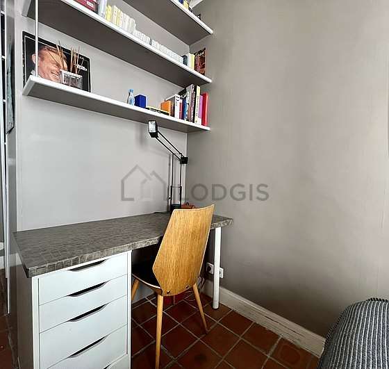 Avec de la tomettes au sol et des fenêtres double vitrage et vue sur cour, cette chambre splendide offre l'équipement nécessaire pour vous reposer pendant votre séjour : draps, couettes, penderie, bibliothèque, etagère, placard, 1 chaise(s)1 lit(s) de 140cm.