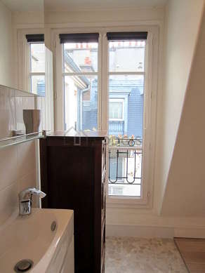Cet appartement est équipé d'une salle de bain agréable et très claire avec des fenêtres. Cette salle d'eau bénéficie du nécessaire pour votre bien-être au quotidien : serviettes de bain, etagère, placard, douche séparée, sèche cheveux. Les toilettes sont séparées de la salle de bain et situées dans une pièce indépendante.