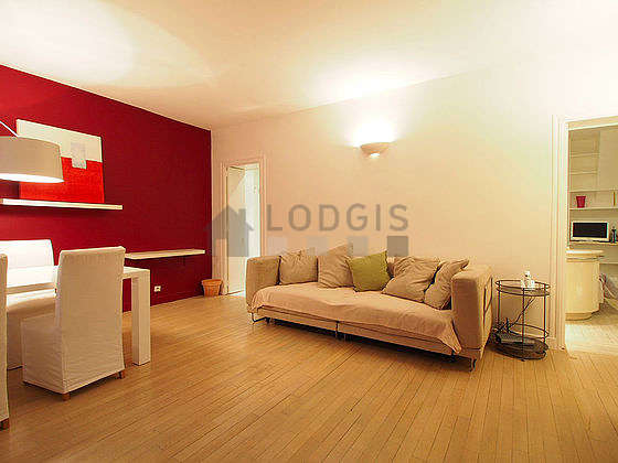 Cet appartement est composé d'un séduisant salon avec du parquet au sol et des fenêtres et vue sur rue. Ce salon calme est meublé et équipé pour rendre votre séjour agréable : table à manger, table basse, penderie, etagère, placard, 7 chaise(s)1 canapé(s) lit(s) de 140cm.