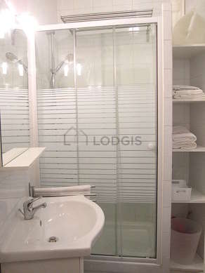 Cet appartement est équipé d'une salle de bain agréable avec des fenêtres. Cette salle d'eau bénéficie du nécessaire pour votre bien-être au quotidien : serviettes de bain, etagère, placard, douche séparée, sèche cheveux, radiateur sèche-serviettes. Les toilettes sont intégrées dans la salle de bain.