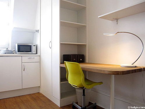 Cet appartement est composé d'un séduisant salon avec du parquet au sol et des fenêtres double vitrage et vue sur rue. Ce salon calme est meublé et équipé pour rendre votre séjour agréable : draps, couettes, table à manger, bureau, penderie, etagère, placard, 1 chaise(s), table de chevet1 lit(s) de 140cm.