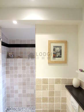 Cet appartement est équipé d'une salle de bain magnifique et claire avec des fenêtres. Cette salle d'eau bénéficie du nécessaire pour votre bien-être au quotidien : serviettes de bain, etagère, douche séparée, sèche cheveux, radiateur sèche-serviettes. Les toilettes sont intégrées dans la salle de bain.