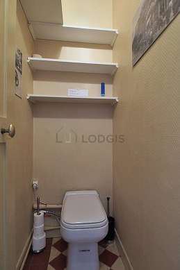 Cet appartement est équipé d'une salle de bain magnifique et claire avec des fenêtres double vitrage. Cette salle d'eau bénéficie du nécessaire pour votre bien-être au quotidien : serviettes de bain, placard, baignoire, radiateur sèche-serviettes. Les toilettes sont séparées de la salle de bain et situées dans une pièce indépendante.