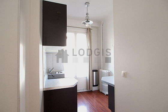 Cet appartement dispose d'une belle cuisine avec du parquet au sol et tout l'équipement essentiel pour votre quotidien : plaques de cuisson, réfrigerateur, micro ondes, freezer, hotte, grille pain, bouilloire électrique, cafetière, placard, vaisselle.