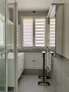 Cet appartement est équipé d'une salle de bain magnifique et claire avec des fenêtres. Cette salle d'eau bénéficie du nécessaire pour votre bien-être au quotidien : placard, douche séparée, lavabo, radiateur sèche-serviettes. Les toilettes sont séparées de la salle de bain et situées dans une pièce indépendante.