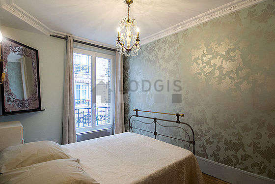 Avec du parquet au sol et des fenêtres double vitrage et vue sur cour, cette chambre séduisante et spacieuse offre l'équipement nécessaire pour vous reposer pendant votre séjour : draps, etagère, commode1 lit(s) de 140cm.