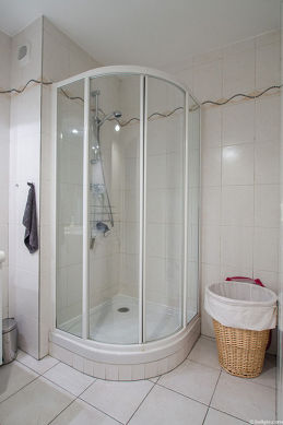 Cet appartement est équipé d'une salle de bain magnifique et claire. Cette salle d'eau bénéficie du nécessaire pour votre bien-être au quotidien : serviettes de bain, placard, douche séparée, sèche cheveux, radiateur sèche-serviettes. Les toilettes sont séparées de la salle de bain et situées dans une pièce indépendante.