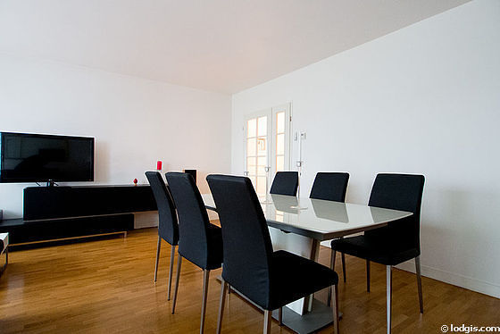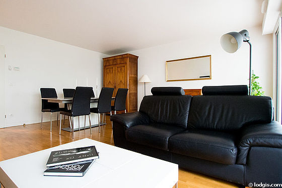 Cet appartement est composé d'un magnifique salon avec du parquet au sol et des fenêtres double vitrage et vue sur jardin. Ce salon très calme est meublé et équipé pour rendre votre séjour agréable : télé, canapé, table à manger, table basse, buffet, 6 chaise(s).