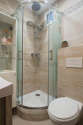 Cet appartement est équipé d'une salle de bain agréable et claire avec des fenêtres double vitrage. Cette salle d'eau bénéficie du nécessaire pour votre bien-être au quotidien : serviettes de bain, etagère, placard, douche séparée, sèche cheveux, radiateur sèche-serviettes. Les toilettes sont intégrées dans la salle de bain.