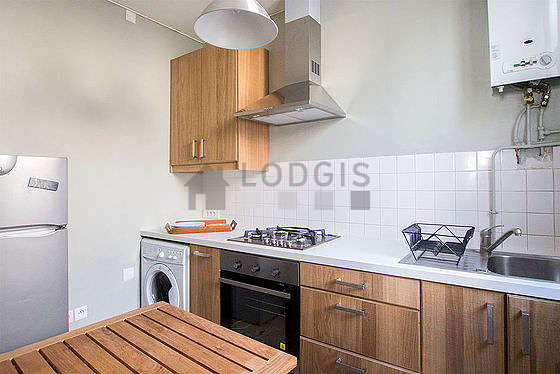 Cet appartement dispose d'une belle cuisine avec du carrelage au sol et tout l'équipement indispensable pour votre quotidien : plaques de cuisson, réfrigerateur, congélateur, four, hotte, grille pain, bouilloire électrique, table à manger, vaisselle.