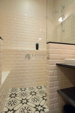 Cet appartement est équipé d'une salle de bain agréable. Cette salle d'eau bénéficie du nécessaire pour votre bien-être au quotidien : serviettes de bain, etagère, douche séparée, radiateur sèche-serviettes. Les toilettes sont séparées de la salle de bain et situées dans une pièce indépendante.