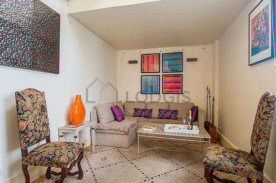 Ce triplex est composé d'un superbe salon avec du parquet au sol et des fenêtres double vitrage et vue sur cour. Ce salon très calme est meublé et équipé pour rendre votre séjour agréable : canapé, etagère.