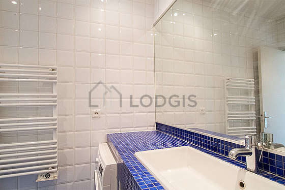 Cet appartement est équipé d'une salle de bain agréable. Cette salle d'eau bénéficie du nécessaire pour votre bien-être au quotidien : serviettes de bain, etagère, placard, baignoire, sèche cheveux, miroir, radiateur sèche-serviettes. Les toilettes sont séparées de la salle de bain et situées dans une pièce indépendante.