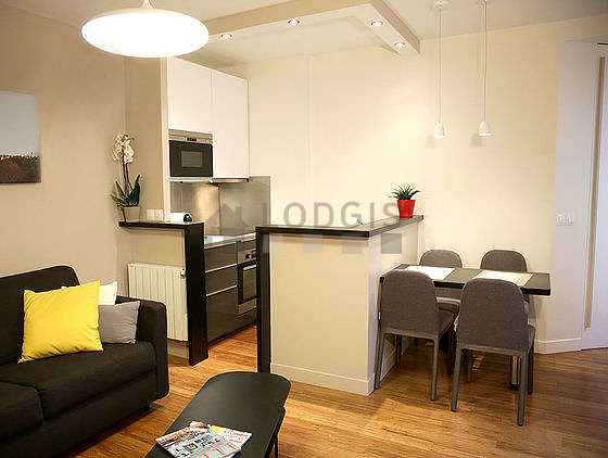 Cet appartement est composé d'un beau salon avec du parquet au sol et des fenêtres et vue sur cour. Ce salon très calme est meublé et équipé pour rendre votre séjour agréable : télé, draps, couettes, table à manger, table basse, placard, 4 chaise(s)1 canapé(s) lit(s) de 140cm.