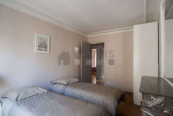 Avec du parquet au sol et des fenêtres double vitrage, balcon et vue sur rue, cette chambre séduisante offre l'équipement nécessaire pour vous reposer pendant votre séjour : draps, couettes, etagère, armoire, table de chevet2 lit(s) de 90cm.