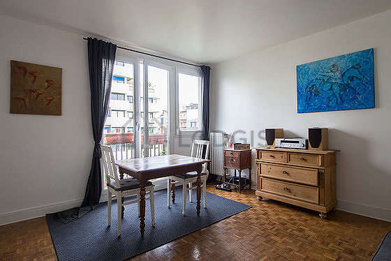 Cet appartement est composé d'un charmant salon avec du parquet au sol et des fenêtres double vitrage et vue sur rue. Ce salon calme est meublé et équipé pour rendre votre séjour agréable : table à manger, etagère, commode, 2 chaise(s), tabouret1 canapé(s) lit(s) de 140cm.