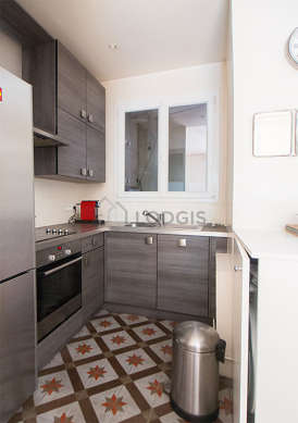 Cet appartement dispose d'une magnifique cuisine avec du carrelage au sol et tout l'équipement essentiel pour votre quotidien : plaques de cuisson, réfrigerateur, congélateur, four, hotte, cafetière, placard, vaisselle.
