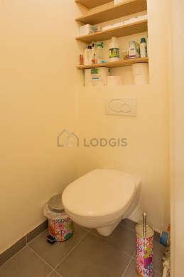 Cet appartement est équipé d'une salle de bain magnifique et très claire avec des fenêtres double vitrage. Cette salle d'eau bénéficie du nécessaire pour votre bien-être au quotidien : serviettes de bain, etagère, placard, baignoire, radiateur sèche-serviettes. Les toilettes sont séparées de la salle de bain et situées dans une pièce indépendante.