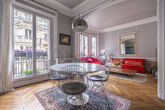 Cet appartement est composé d'un plaisant salon avec du parquet au sol et des fenêtres double vitrage et vue sur cour. Ce salon très calme est meublé et équipé pour rendre votre séjour agréable : télé, 1 fauteuil(s), table à manger, table basse, placard, cheminée, 1 chaise(s)1 canapé(s) lit(s) de 140cm.