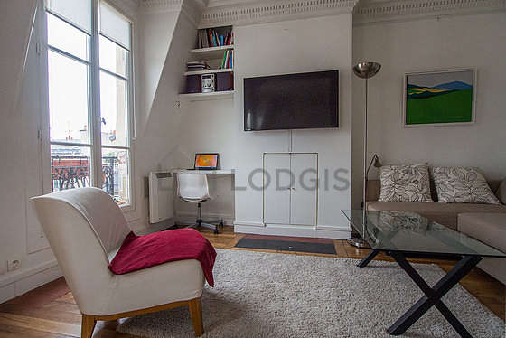 Cet appartement est composé d'un beau salon avec du parquet au sol et des fenêtres double vitrage et vue sur rue. Ce salon très calme est meublé et équipé pour rendre votre séjour agréable : télé, 1 fauteuil(s), table à manger, table basse, bureau, etagère, 2 chaise(s)1 canapé(s) lit(s) de 140cm.