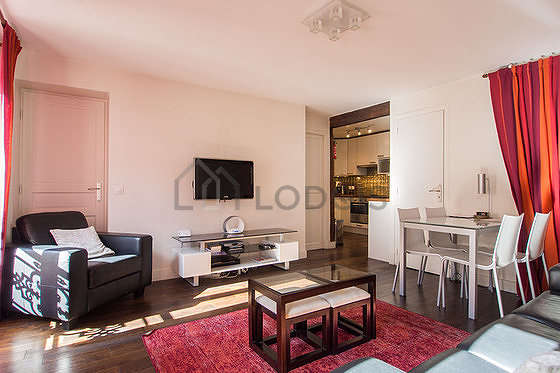 Cet appartement est composé d'un magnifique salon avec du parquet au sol et des fenêtres double vitrage et vue sur rue. Ce salon très calme est meublé et équipé pour rendre votre séjour agréable : télé, canapé, 1 fauteuil(s), table à manger, table basse, 6 chaise(s).