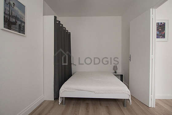 Cet appartement est composé d'un séduisant salon avec du parquet au sol et des fenêtres double vitrage et vue sur rue. Ce salon calme est meublé et équipé pour rendre votre séjour agréable : télé, canapé, etagère.