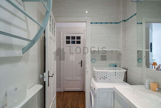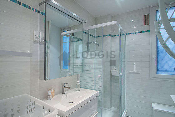 Cet appartement est équipé d'une salle de bain agréable avec des fenêtres. Cette salle d'eau bénéficie du nécessaire pour votre bien-être au quotidien : serviettes de bain, etagère, placard, douche séparée, sèche cheveux. Les toilettes sont séparées de la salle de bain et situées dans une pièce indépendante.