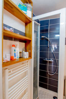 Cet appartement est équipé d'une salle de bain magnifique et claire avec des fenêtres double vitrage. Cette salle d'eau bénéficie du nécessaire pour votre bien-être au quotidien : serviettes de bain, placard, douche séparée, lavabo, radiateur sèche-serviettes. Les toilettes sont intégrées dans la salle de bain.