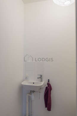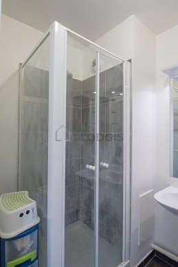 Cet appartement est équipé d'une salle de bain agréable et claire. Cette salle d'eau bénéficie du nécessaire pour votre bien-être au quotidien : serviettes de bain, etagère, douche séparée, radiateur sèche-serviettes. Les toilettes sont séparées de la salle de bain et situées dans une pièce indépendante.
