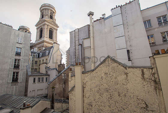 Chambre (8 m²) : - Vue sur cour - Vue sur : L'Eglise Saint Sulpice