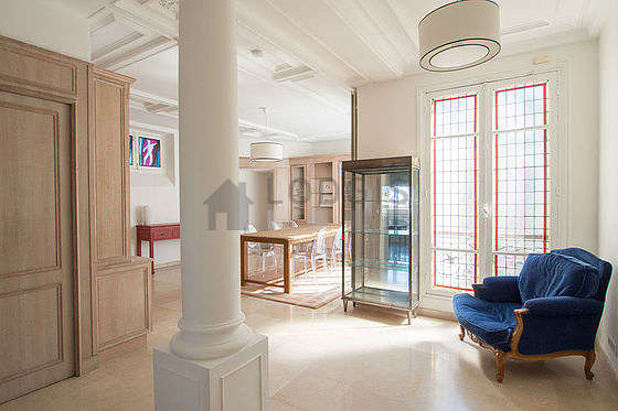 Afin de partager vos repas en toute convivialité pendant votre séjour parisien, cet appartement dispose d'une magnifique salle à manger grâce à 1 fauteuil(s), table à manger, etagère, placard, 6 chaise(s).