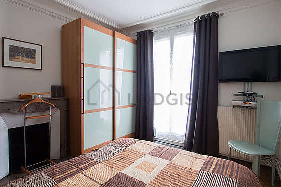 Avec du parquet au sol et des fenêtres double vitrage, balcon et vue sur rue, cette chambre séduisante et spacieuse offre l'équipement nécessaire pour vous reposer pendant votre séjour : télé, draps, couettes, penderie, etagère, placard, 1 chaise(s)1 lit(s) de 140cm.