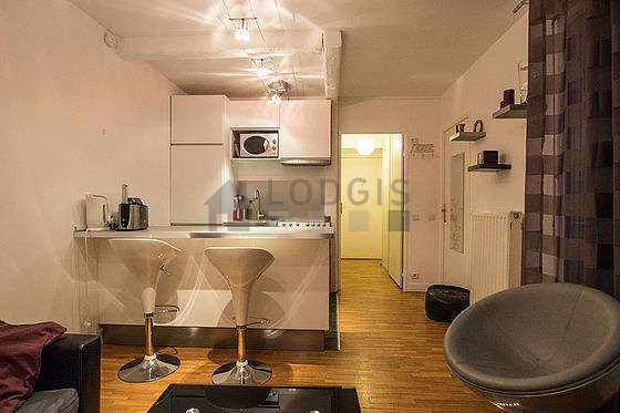 Cet appartement est composé d'un séduisant salon avec du parquet au sol et des fenêtres double vitrage et vue sur jardin. Ce salon calme est meublé et équipé pour rendre votre séjour agréable : télé, draps, 2 fauteuil(s), table basse, penderie, placard1 canapé(s) lit(s) de 140cm.